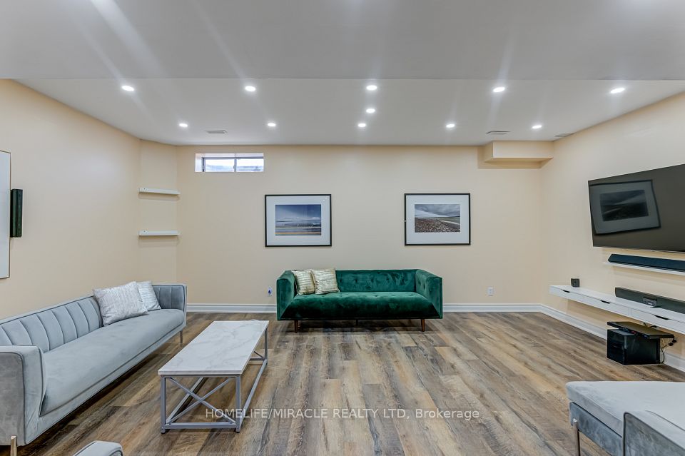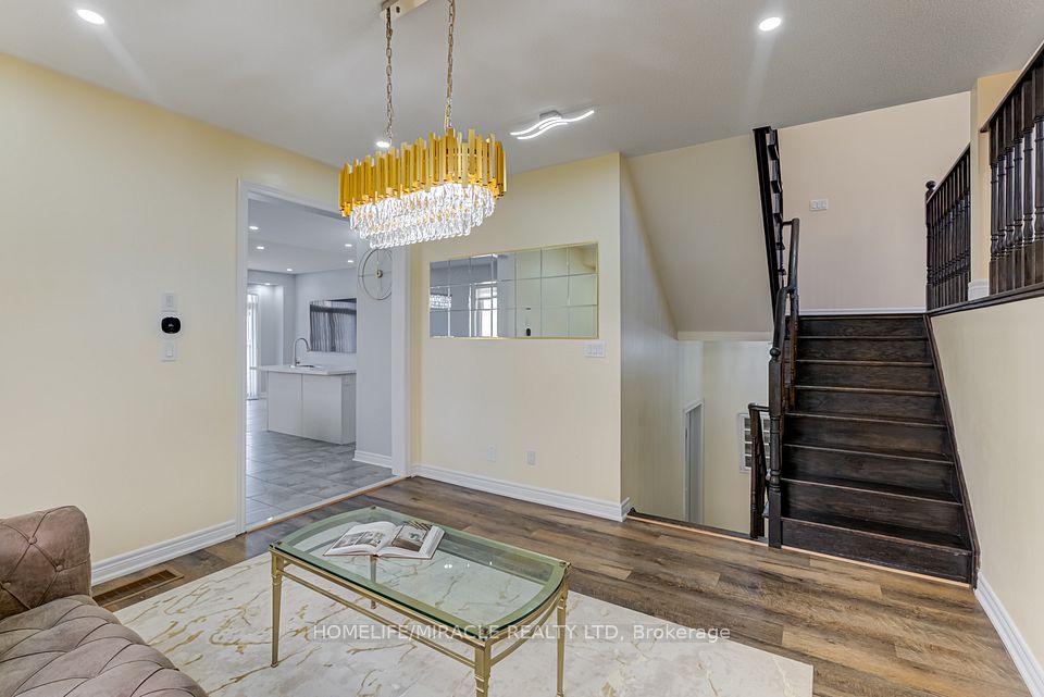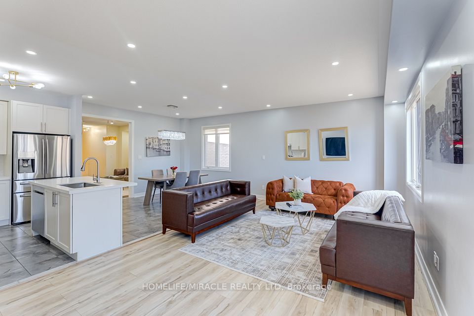 This stunning double-car garage home is located in Alliston's most prestigious, family-oriented community. Offering over 2,100 sq. ft. of above-grade space and a total of approximately 3,000 sq. ft. of living area, this residence is perfectly designed for comfort and functionality. Situated on a spacious pie-shaped lot, the home features a walkout basement leading to the garage. The fully finished basement includes a full bathroom and boasts high ceilings, making it ideal for entertaining or as a potential rental unit for additional income. Enjoy privacy with no sidewalk and no neighbors behind. The expansive family/great room includes a balcony, perfect for hosting large gatherings or enjoying family entertainment. The newly upgraded kitchen is a chefs dream, featuring quartz countertops, a stylish backsplash, a gas stove, and modern pot lights throughout. Elegant flooring extends across the entire home, enhancing its sophisticated appeal. This exceptional property offers a rare combination of luxury and practicality.
